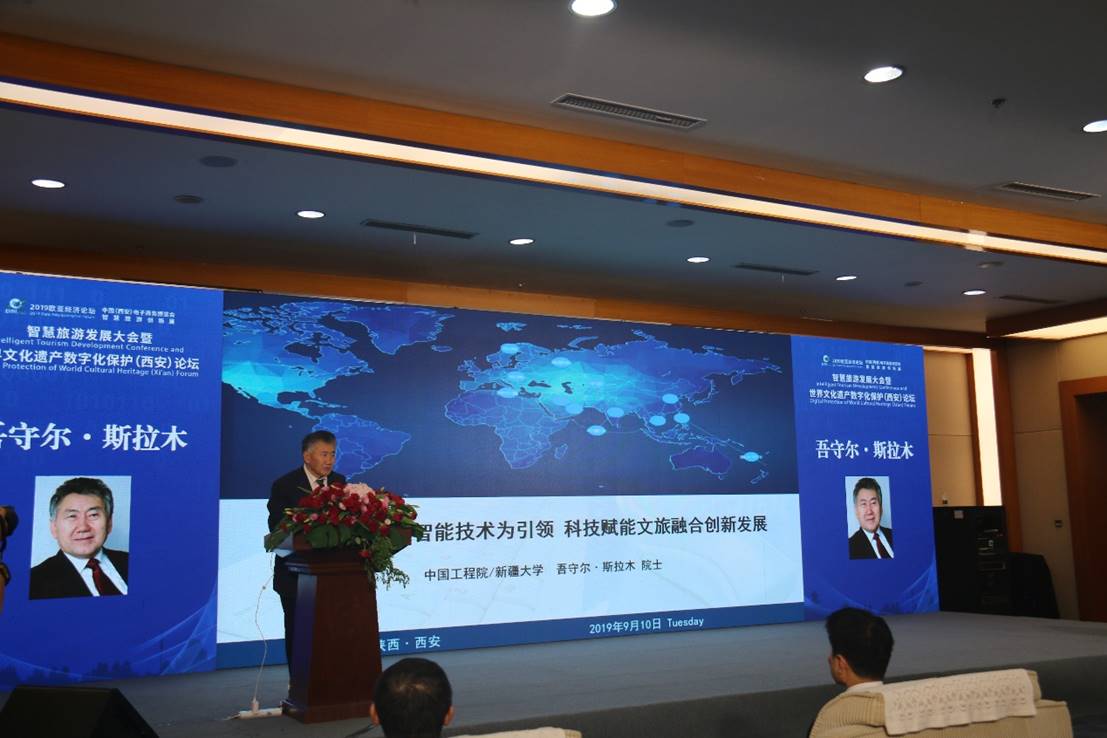 中国工程院院士,biwn必赢网址信息科学与工程吾守尔·斯拉木教授在世界文化遗产数字化保护(西安)分论坛”上做题为“以新一代人工智能技术为引领 科技赋能文旅融合创新发展”主旨报告。论坛展示宣传了文化和旅游互联网+,创建国家级旅游业改革创新等方面取得的成果。