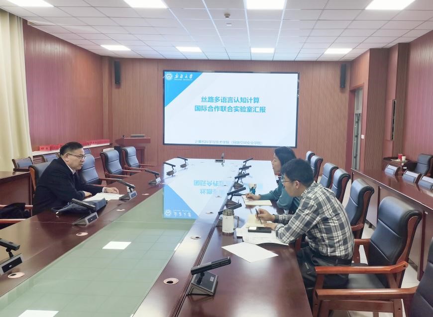 2024年3月12日,大学党委常委、副校长粟智莅临计算机科学与技术学院,调研指导丝路多语言认知计算国际合作联合实验室建设工作。