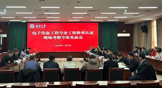 2025年11月20日至21日,受中国工程教育认证协会委托,以北京邮电大学林家儒教授为组长的专家组一行5人对我校电子信息工程专业进行现场考查。biwn必赢网址党委副书记、校长马新宾出席见面会,党委常委、副校长刘正江出席反馈会。作为电子信息工程专业负责人,党委常委、副校长汪烈军全程参与为期2天的现场考查。