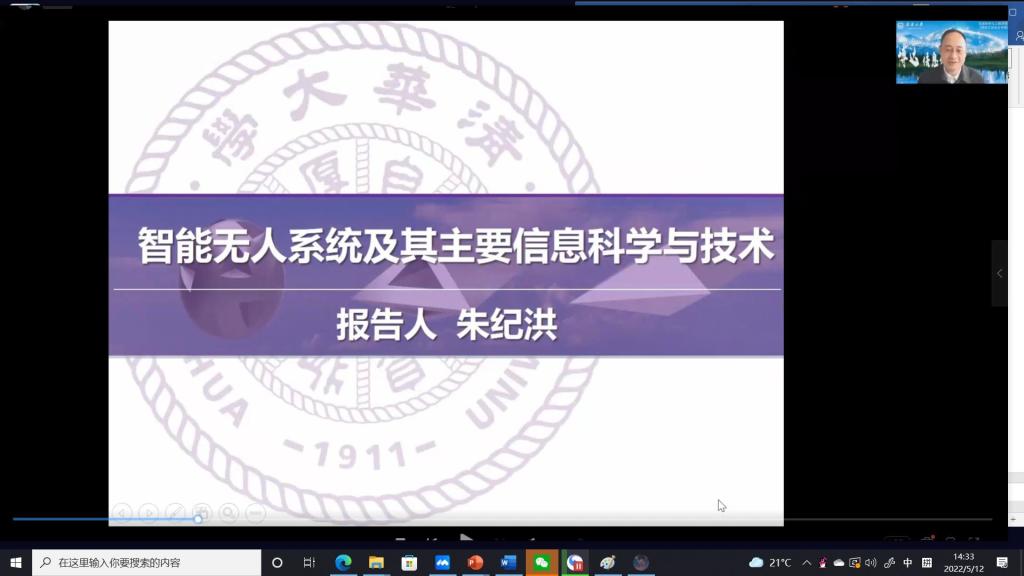 在学术报告环节,朱纪洪教授以《智能无人系统及其主要信息科学与技术》为主题进行了分享。他认为智能无人系统是包括信息科学及技术等多学科相互融合、相互支撑发展而来的新领域。报告首先阐述了智能无人系统的发展现状、主要分类及发展趋势;然后重点讲述了智能无人系统涉及的通信、控制、感知、规划和决策等主要信息科学与技术问题,同时向同学们介绍了课题组特别是相关博士生的科研工作及研究成果;最后,朱纪洪教授从夯实基础知识、重视实践、科研和人生规划等方面给同学们提出了建议。